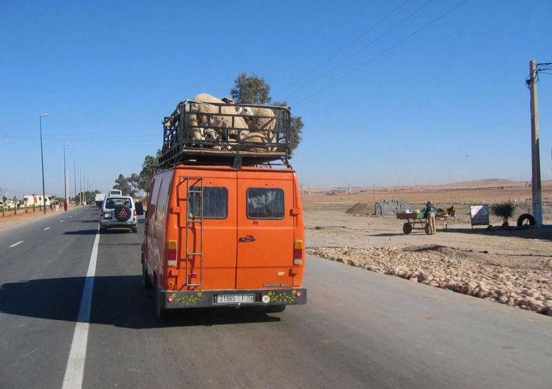 Ist man in Tanger „von Board“ gegangen kann man sich gleich daran gewöhnen, das es keine Verkehrsvorschriften zu geben scheint. Ok, es gibt welche, aber das sind wohl nur unverbindliche Vorschläge ;-). Man sollte da nicht so zimperlich sein, wenn man doof genug war, mit seinem Neuwagen da runter zu fahren, das geht nur auf Herz… Grundregel: Das Auto was zu mindestens 1/3 vor dem anderen ist, hat Vorfahrt. Wenn man den Kopf ein bisschen nach links und rechts dreht und sieht nix, hat man freie Fahrt. Man muss das so machen, sonst kommt man nie voran. Hupen ist nicht unfreundlich, sondern wird als Gruss verstanden der bedeutet „Jetzt fahre ich“ Das ist nicht ironisch gemeint, das funktioniert so!!! Ich musste das auch erst lernen. Sollte man mal angehalten werden (die Amis haben den Marokkanern 400 Laserpistolen geschenkt), oder aus Versehen durch eine Polizeikontrolle gerauscht sein… na ja, alles Verhandlungssache. übrigens Polizeikontrollen gibt es einige, aber die wollen nix böses, Passport, grüne Versicherungskarte und die Auskunft man sei Deutsch zieht noch die Frage „La Profession?“ nach sich: also „was arbeitest du?“ Dann heisst es „Bon Route“ und man kann weiterfahren.