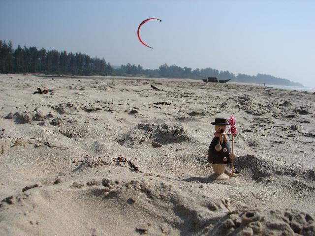 Eine Nachtfahrt spaeter stehen wir dann endlich in der Waerme – am Strand, alleine, unter Palmen, in Tarkali Beach. Und der aufkommende Wind laesst uns sofort vergessen, dass unser Tuk Tuk gerade ein Rad verloren hat. Mitten auf der Strasse, mitten in einer Abfahrt. Wen stoerts? In kuerzester Zeit haben wir die Kites aufgepumpt und sind auf dem Wasser. Mit Blick auf Palmen, perfektem Wind und im Shorty. Was will man mehr? Die Zuschauermenge am Strand waechst mit jedem Schlag und kaum wieder im Trockenen werden Kites und Boards von einheimischen Fischern und hier Urlaub machenden Polizisten und Boersenmaklern inspiziert. Schon sind wir im Gespraech. Erfahren mehr von indischer Kultur als in den gesamten drei Wochen vorher und werden geloechert mit Fragen ueber Deutschland.