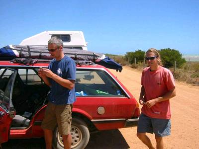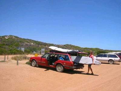 Fuer ein Board und zwei Segel sollen wir 90 Dollar pro Tag bezahlen – nicht gerade billig. Nachdem wir uns im zweiten Surfshop umgesehen haben, die aber nur sehr wenig Auswahl haben, gehen wir schliesslich auf den Deal ein und packen ein Naish Board und zwei Ezzy Segel in den Ford Falcon. Da ich mir das Material mit Oliver teilen werde, kommen wir letztendlich auf 45 Dollar pro Person und Tag.