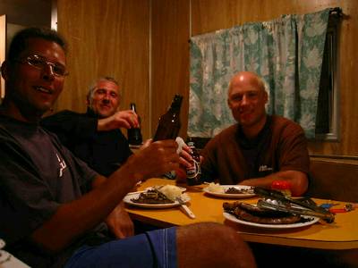 Da Greg und Frank ein Zelt dabei haben, quartieren wir uns – nach der ersten Nacht im Backpacker – fuer drei Naechte auf dem Campingplatz am Sunset Beach ein. Oliver und ich mieten uns einen Camper, der auch eine kleine Kueche besitzt, die fuer unsere Zwecke voellig ausreichend ist. Natuerlich gibt es auf dem Campingplatz mehrere BBQ-Stellen, so dass wir meist eh grillen. Auch sonst ist die Anlage sehr zu empfehlen.