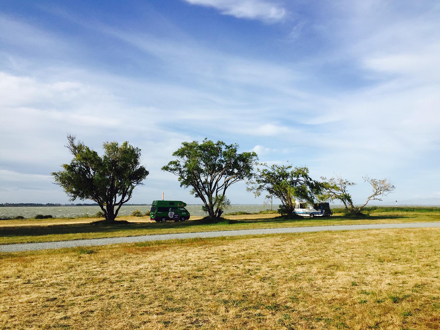 Von der 1 Richtung Leeston, weiter zum einzigen Campingplatz (am besten über Navi).
