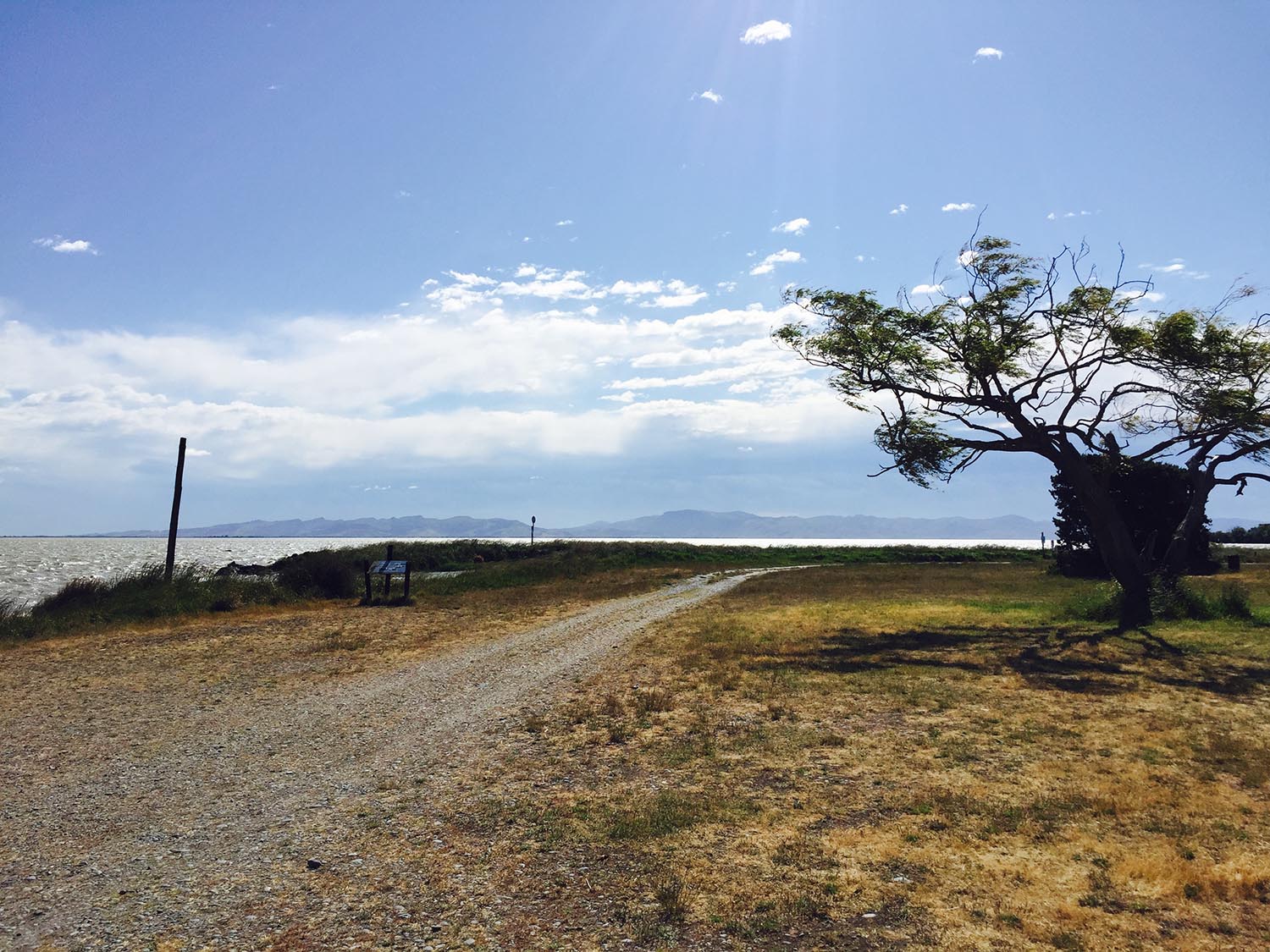 Wiese zum Auf- und Abbau sowie Starten, man kann bei verschiedenen Windrichtungen kiten, da der Spot eine Halbinsel ist. Halb Süß/Salzwasser. Wasser etwas trüber.