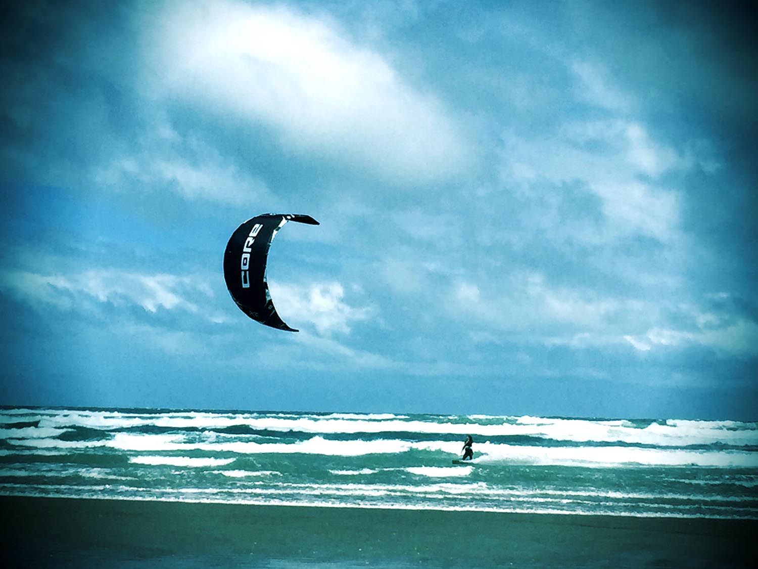 Breiter Strand zum Aufbauen, Tide etwas beachten, beste Bedingungen bei onshore/sideonshore, bei sideshore muss man halt über die Wellen 😉