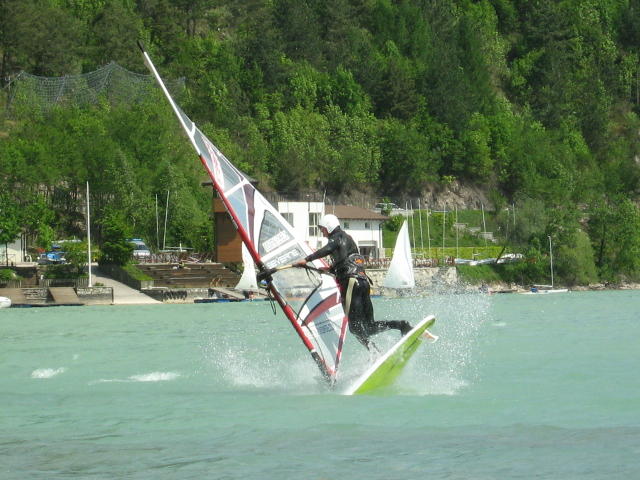 Der Lago di Cavazzo scheint im deutschsprachigen Raum als Revier gänzlich unbekannt zu sein. Nicht so bei den friulanischen Windsurfern. An Wochenenden finden sich gut 20 italienische Surfer in den frühen Morgenstunden ein. Windsurfer aus Österreich / Deutschland habe ich bisher noch nicht gesehen.