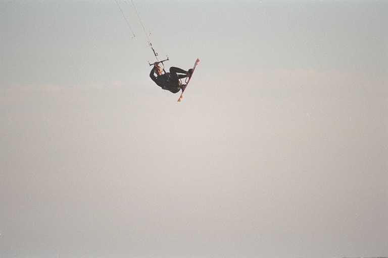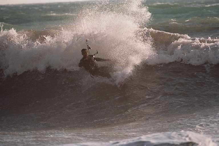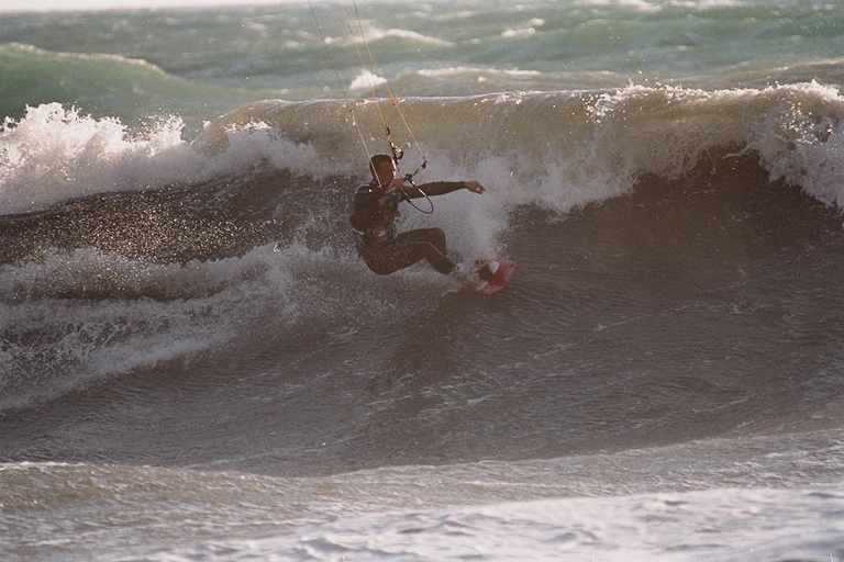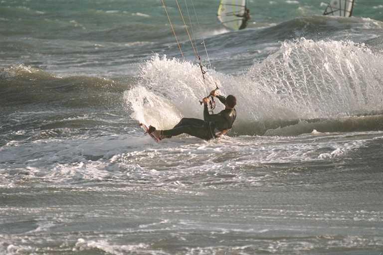 Am naechsten Morgen weckte uns eine leichte Brise, die an unserem Auto wackelte, und als wir dann ziemlich verschlafen aus eben diesem krochen, stellten unsere mueden Augen fest, das die leichte Brise ein gut surfbarer, ablandiger Wind war. Nach einem kurzen Cappuccino in einem der vielen Cafés galt es somit, den ersten Surftag auf unserer Reise in Angriff zu nehmen. Der Wind reichte zwar gerade so fuers Freestylematerial, aber Spass hat es trotzdem schon aufgrund des tollen Ambientes gemacht. So sassen wir dann am Abend ziemlich muede und doch in toller Stimmung wieder in unserem Wagen um den naechsten schoenen Surfort zu finden.