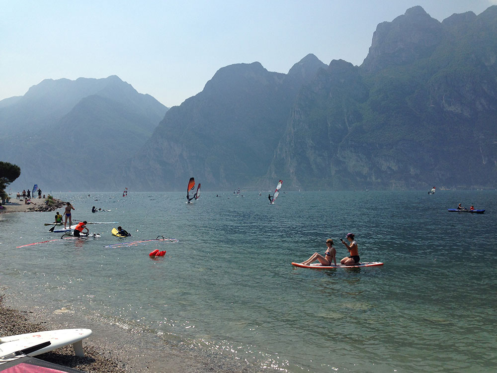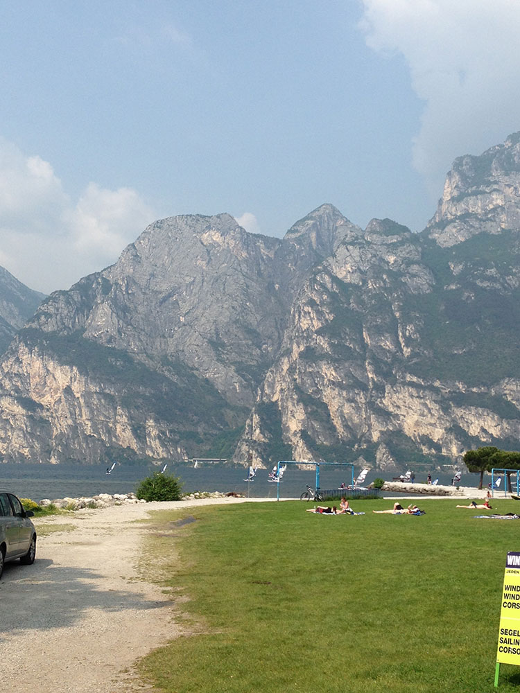 Ansonsten gibt es natürlich einige Campingplätze in Torbole, die direkt am Wasser gelegen sind und von denen man direkt sein Material ans Wasser tragen kann. Das heisst, man spart sich die Parkplatzsuche und auch die Kosten dafür, muss aber ein wenig (oder auch mehr) Rumgedümpel in Kauf nehmen.