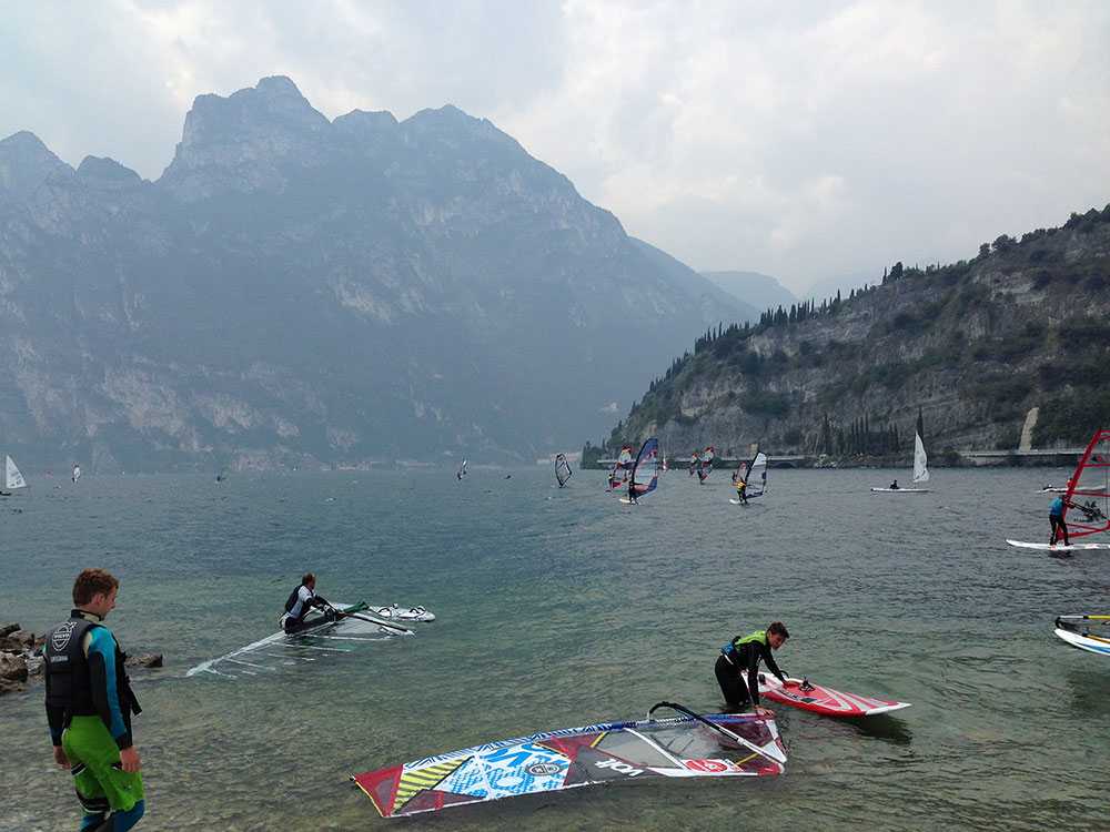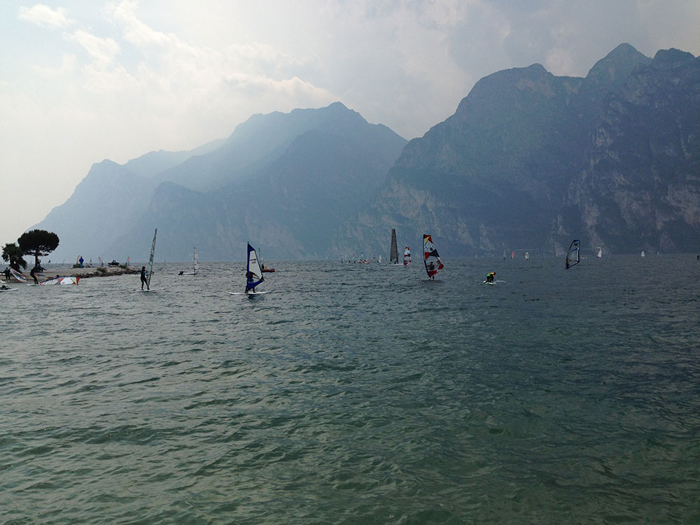 Die Nachteile dieses Spots sind einmal die Parkplatzgebühren, wenn man mit dem eigenen Material angereist ist (6 bis 10 Euro – weiss ich nicht so genau, ist halt Italien!!), und dann die Tatsache, dass es hier an einigen Wochenenden und im Hochsommer doch sehr schnell voll wird. Das heisst, man muss sich rechtzeitig seinen Parkplatz sichern und die Gesellschaft vieler Windsurfkollegen auf engen Raum schätzen (die locals meiden deshalb an Wochenenden oft den See und ziehen sich in die Berge zurück, wo man selbst im Sommer die absolute Ruhe finden kann). Ansonsten kann man sich an diesem Spot auch mit Familie wirklich sehr wohl fühlen, da die Surfschul- und Barbetreiber auch wirklich sehr nett sind. An allen Dienstag Abenden im Sommer gibt es z.B. in der Strandbar eine „Festa latinaamericana“, wo man überflüssige Energien noch vertanzen kann. Hier findet übrigens auch der King of the Lake Anfang Juli statt, sehr lustig und eine gute Party!