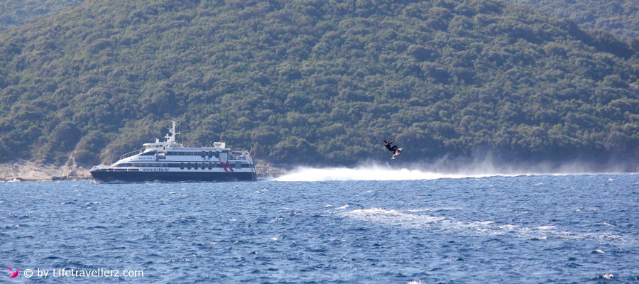 Ideale Windrichtung war West bis Südwest oder auch Ost, das aber nur bei starker Bora. Der vorherrschende Wind ist der Maestral. Das ist ein Thermikwind der sehr heiss ist und immer so gegen 14 Uhr mit 4 Bft. anfängt und konststant ballert.