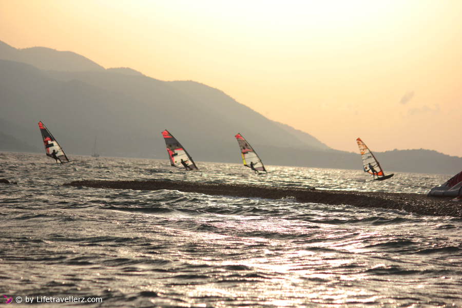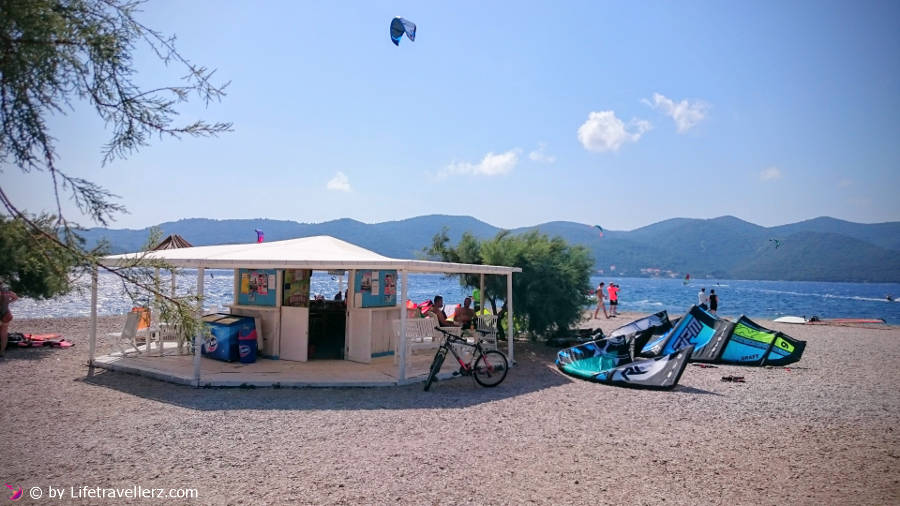 Parkplätze sind überall… in Kroatien kann man überall parken, man nimmt das nicht so eng. Am Strand steht noch eine Süsswasserdusche und wenn mal was passiert sind die Surflehrer mit dem Motorboot da, aber sonst helfen einem auch die anderen kroatischen Surfer.