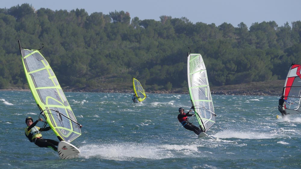 In der Bucht von Fornells (Ses Salines), kann man als Slalom-Windsurfer bei Binnensee Bedingungen unbeschwert heizen gehen. Nordwind oder Suedwind werden hier teilweise etwas thermisch verstaerkt.