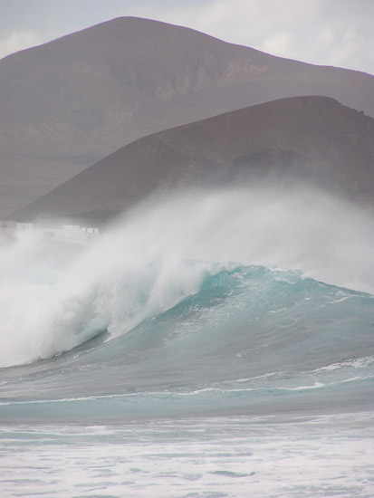 Die Hafenwelle befindet sich direkt in Ortsmitte von Caleta de Famara, links von der Hafenmauer. Es ist eine linke Welle, für die es auf jeden Fall einen kräftigen Swell aus Nord braucht. Sie bricht ab etwa 6 Fuss Swell und hält sicher bis 10/12 Fuss. Deshalb funktioniert sie auch nicht oft. Der Wind sollte am besten aus Süd oder Ost kommen. Es ist ein Reefbreak, der Ein- und Ausstieg ist über das Hafenbecken problemlos möglich. Auch wenn das einfach ist, sollten nur erfahrende Surfer hierher gehen. Sie ist schnell, hollow und der Felsuntergrund nah. Nebenbei ist sie von Locals heiss umkämpft, und wer nicht Rücksicht nimmt, ist raus. Beste Gezeiten midtide und hightide, aber auch bei lowtide möglich und tuby.