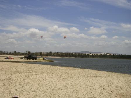 Der Süsswassersee befindet sich ca 6km Strandlänge von Cumbuco. überland fährt man von Cumbuco aus ca 30 Minuten. Stehrevier mit absoluten Flachwasserbedingungen. Allerdings verträgt die Pfütze nur 20 Kiter und damit in unserer Zeit ständig überfüllt. Morgens oder spät abends ist immer was frei. Wenn Platz ist, dann macht der Spot auch richtig Spass. Schön ist ein Downwindtrip von Cumbuco zur Lagune macht, anschliessend kann dann mit dem Kite in der Luft den Strand überqueren und gleich weiterkiten. Man muss sich nur abholen lassen.